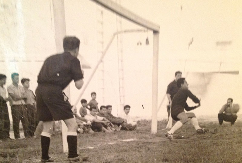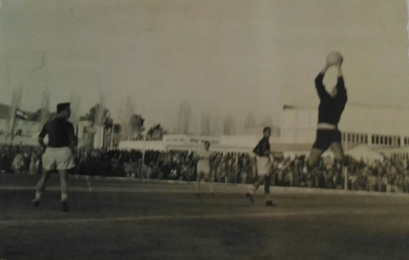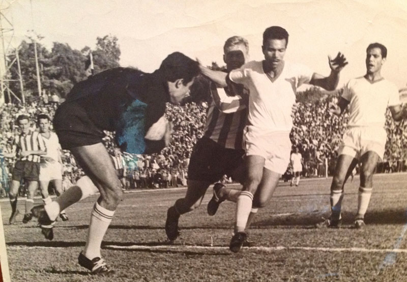 الملعب البلدي في دمشق مباراة بين فريق الشرطة الذي كنت ألعب معه وفريق تشيكوسلافي
